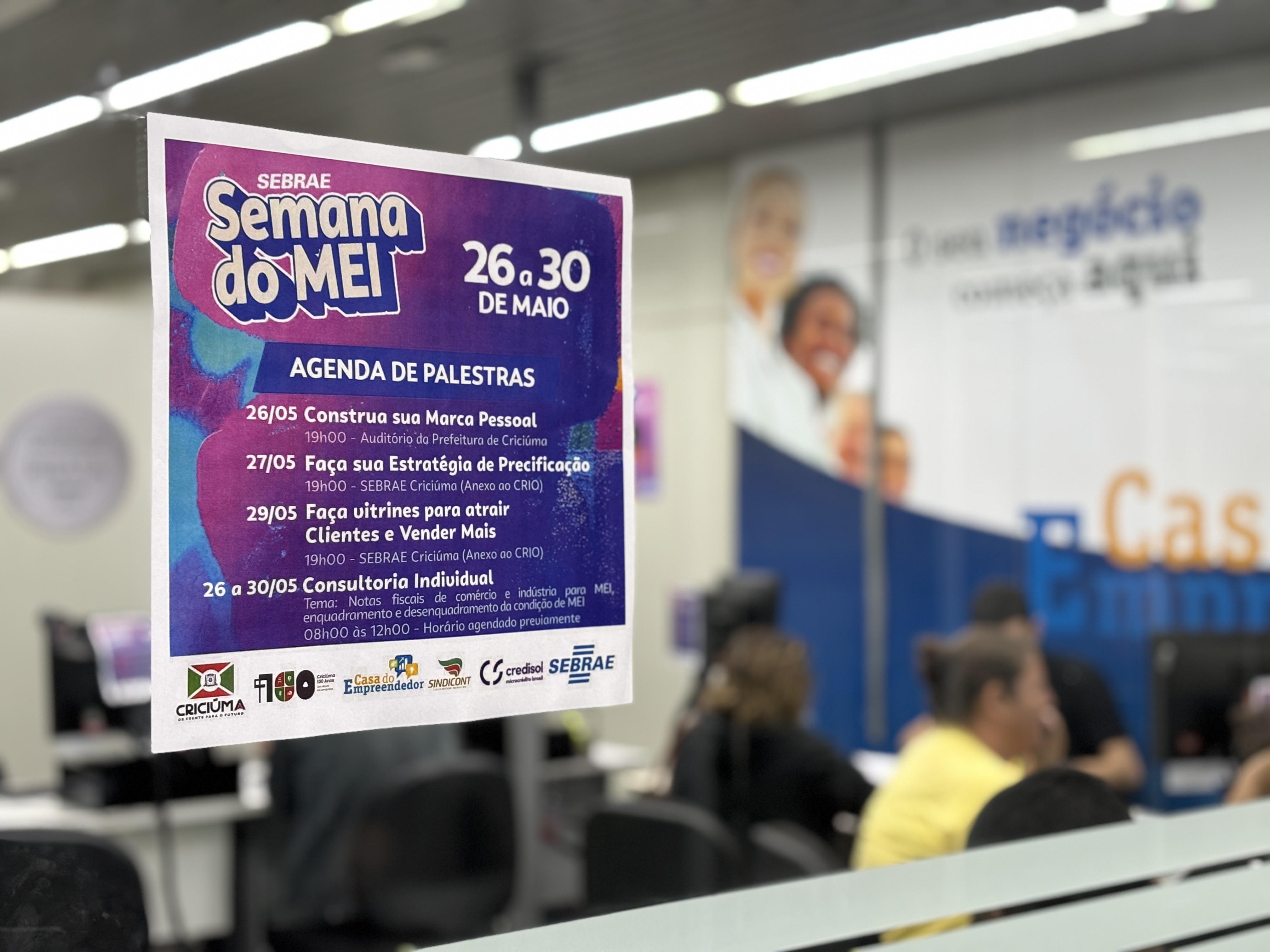 Durante a Semana do MEI, a Casa do Empreendedor seguirá com os atendimentos ao público, das 8h às 17h. Mais informações sobre o local podem ser obtidas no site casadoempreendedor.criciuma.sc.gov.br.